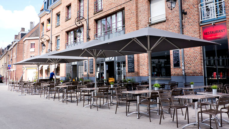 Amalfi kann mit Wandhalterung geliefert werden und ist außerdem als Doppelschirm und Quadroschirm erhältlich! Zwei bzw. vier Schirmdächer werden dazu an einem zentralen DUO- oder QUADRO-Masten eingehängt. So können auch sehr große Flächen beschattet werden.