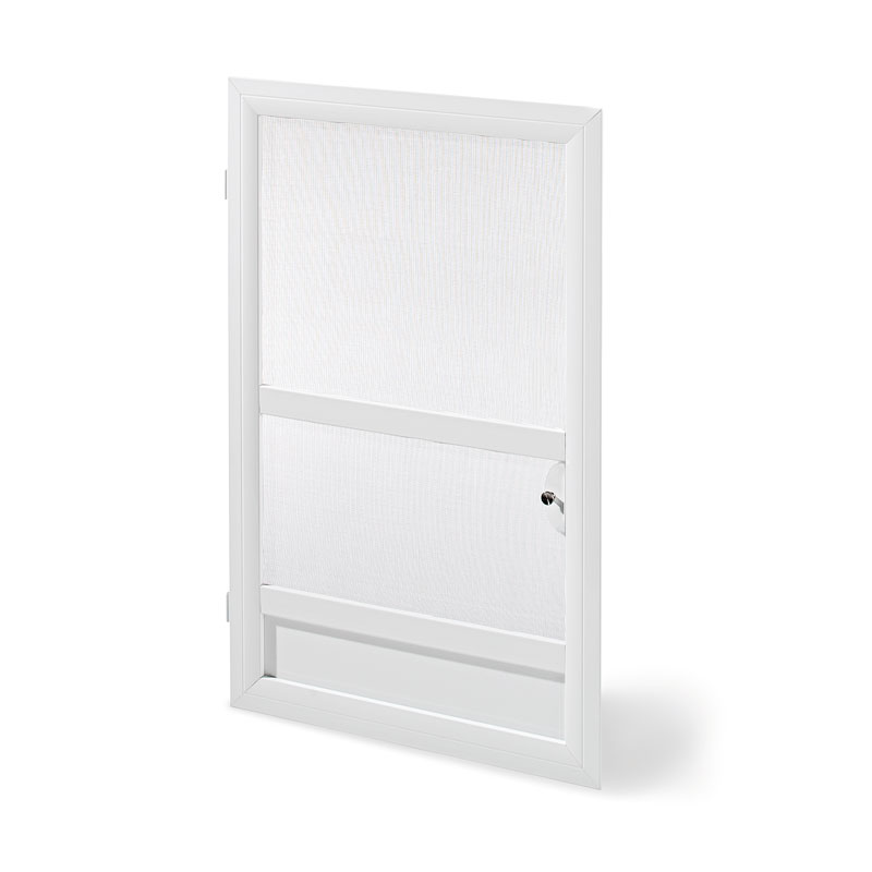 Durch die verschiedenen Einbaurahmenvarianten und die geringe Einbautiefe von nur 13 mm sind die Flylock-Pendeltüren auf alle gängigen, bestehenden Türvarianten montierbar. Zur Reinigung oder in den Wintermonaten lässt sich die Pendeltür problemlos ein- oder aushängen. Umlaufende Bürsten sorgen für einen Rundumschutz.